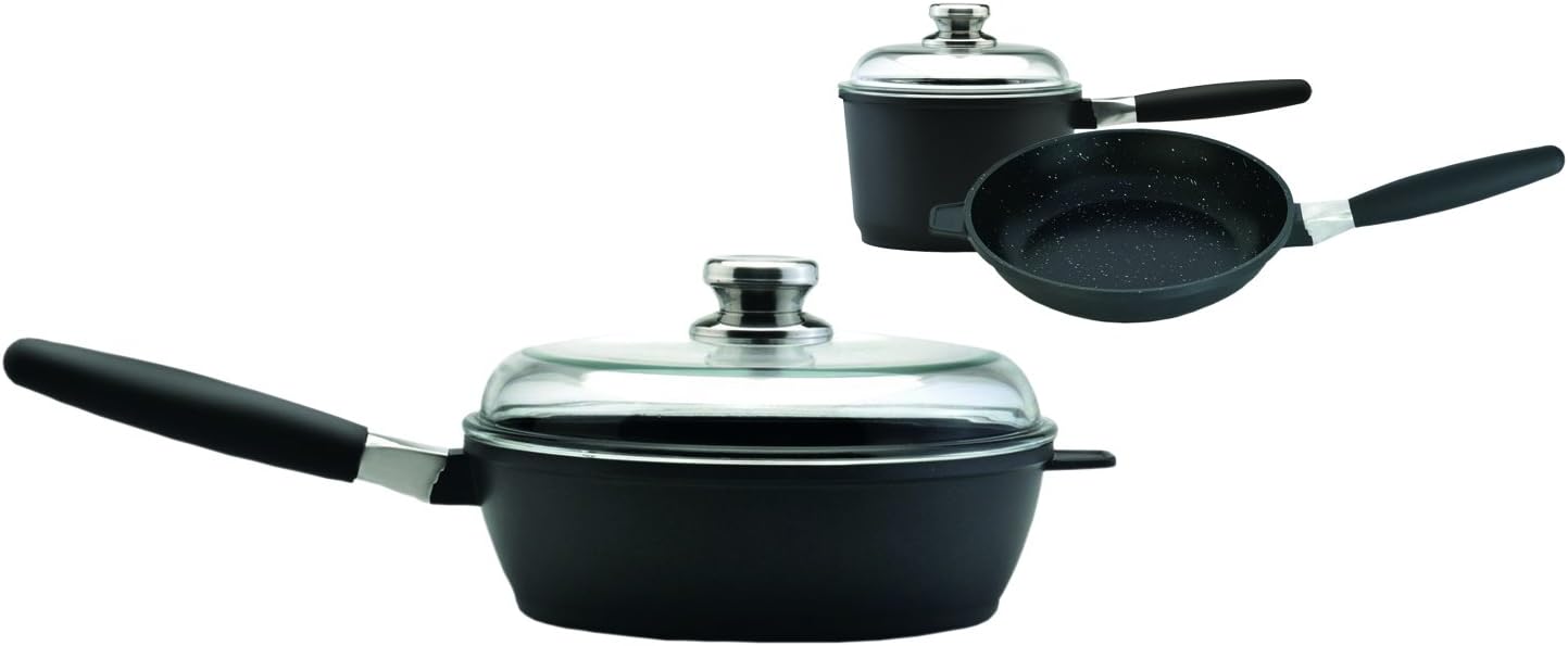 by BergHOFF Starter Set with 2 Lids | Ceramic and Titanium Cooking Surface | Durable. Lightweight Cast Construction | Detachable Handle for Oven Use | Designed in Europe. Made for America
